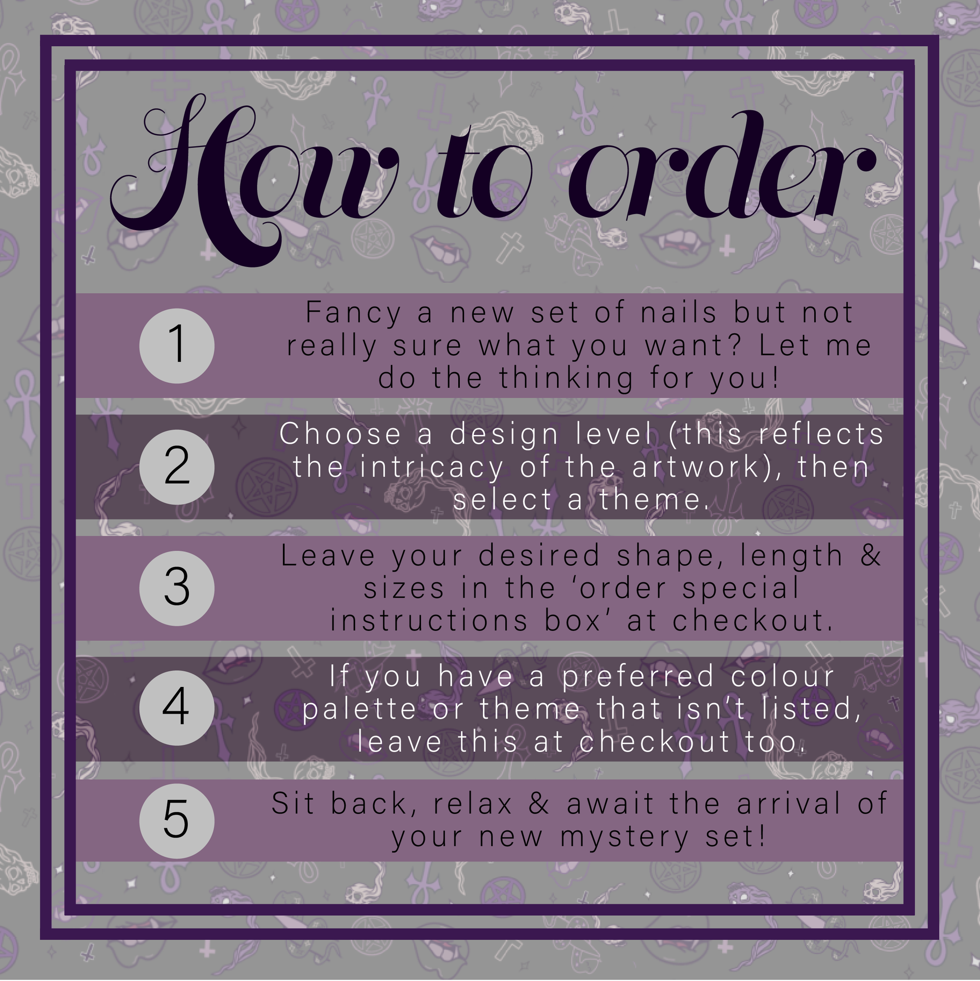 When purchasing a Mystery Design, your nails will be an original, brand new design, but you might see them available to purchase in the shop after you have received them!