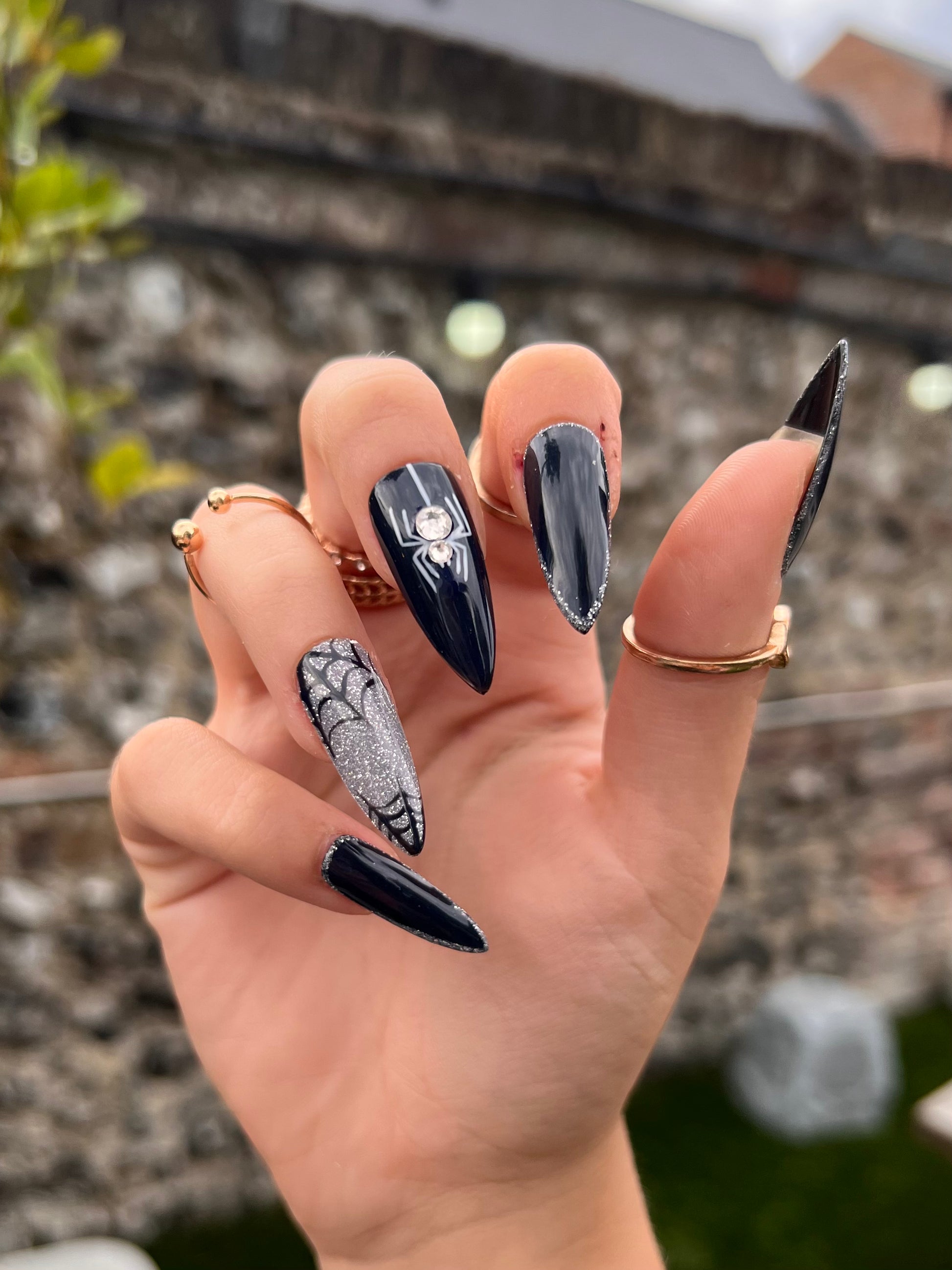 Make a statement this Halloween with a bold black, accompanied by an out-of-this-world reflective silver glitter!